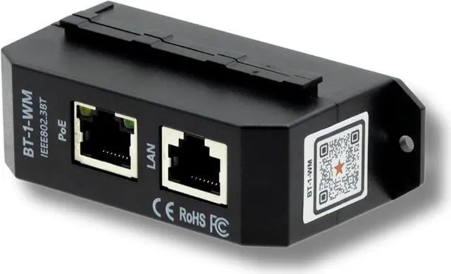 Enjoy a smaller form factor and modular capability: This midspan injector packs PoE++ into the size of a standard PoE injector. Need more ports? Simply slide another BT-1 into the first one for a clean Modular installation. Wall mount or DIN rail mountable.