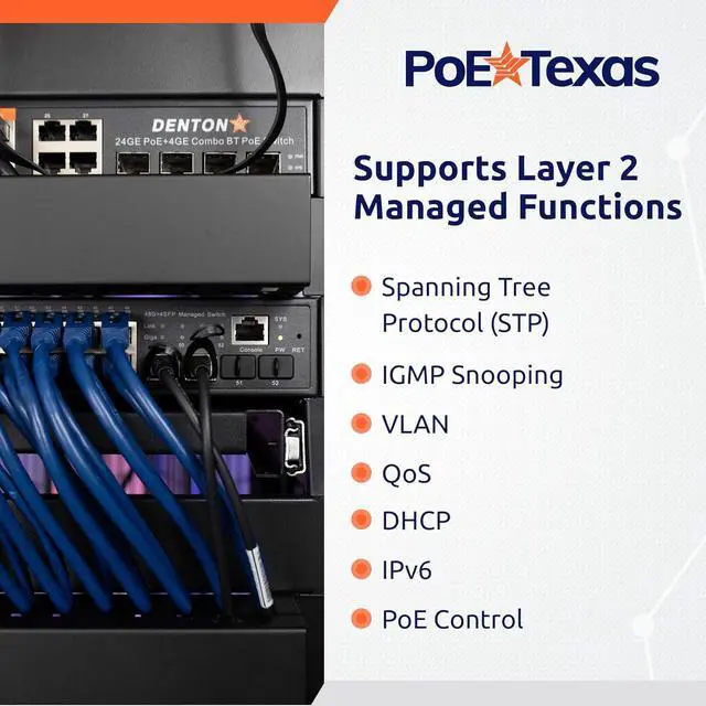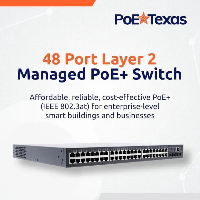 This 48 port switch is a full gigabit managed PoE+ switch delivering reliable, cost effective Power Over Ethernet with web and local management. An ideal rack mount option for IT administrators needing access to affordable Layer 2 management.