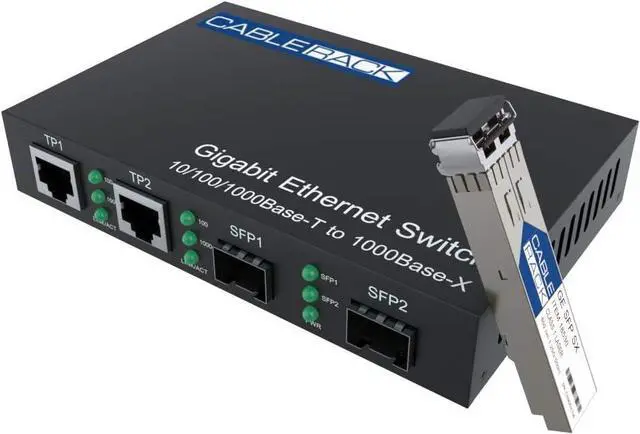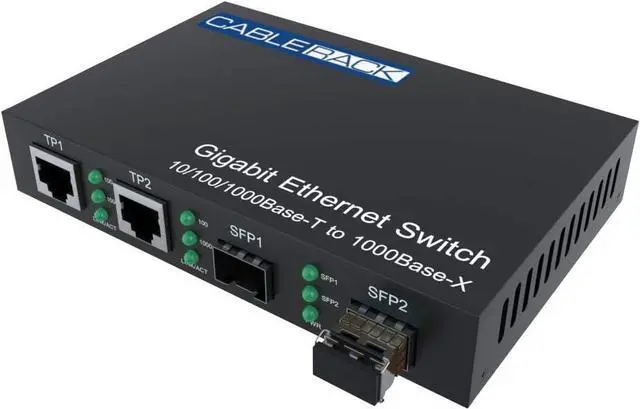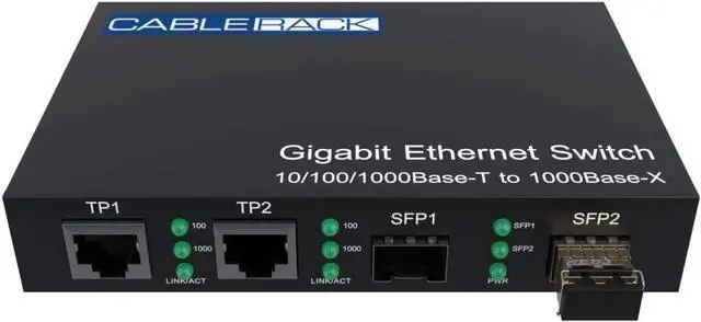 CableRack Dual Gigabit Media Converter with SFP Transceiver for LC Singlemode Fiber Convert RJ45 Ethernet to Gigabit Fiber with Zero Setup Works with Gigabit Equipment Scale out Network Connections Bridge Gigabit Connections