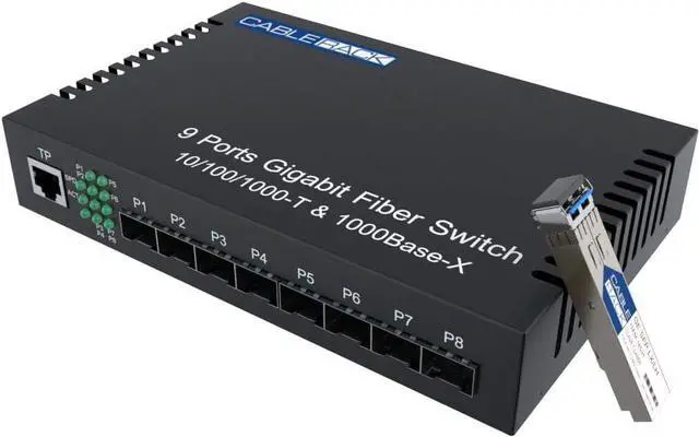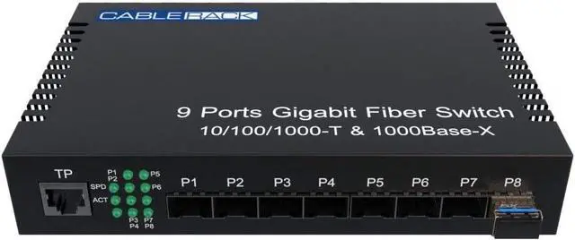 CableRack 8 Port SFP Unmanaged Ethernet Optical Switch with One Singlemode SFP Convert RJ45 Ethernet to Gigabit Fiber with Zero Setup Works with Gigabit Equipment Scale out Network Connections Bridge Gigabit Connections