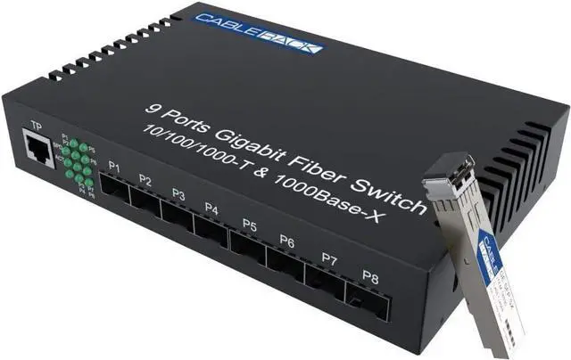 CableRack 8 Port SFP Unmanaged Ethernet Optical Switch with One Multimode SFP Convert RJ45 Ethernet to Gigabit Fiber with Zero Setup Works with Gigabit Equipment Scale out Network Connections Bridge Gigabit Connections