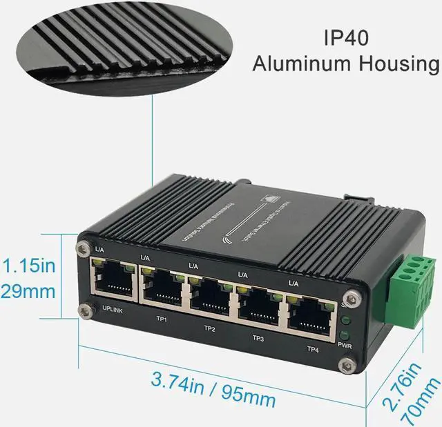 Industrial Full Gigabit 5 Ports PoE Switch 12~48V DC