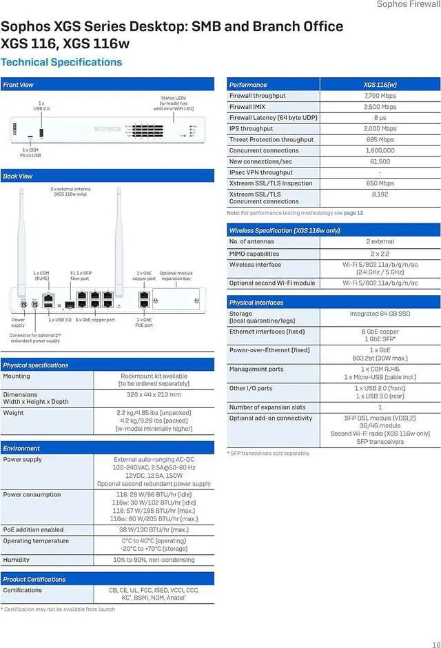 XGS Series Desktop Firewalls SD-RED Series/ Access Points Sophos XG 116 & XG 116W Sophos XGS Series Desktop: SMB and Branch Office Powerful Protection and Performance Xstream Protection - A Single Bundle For Ultimate Protection Highlights:
