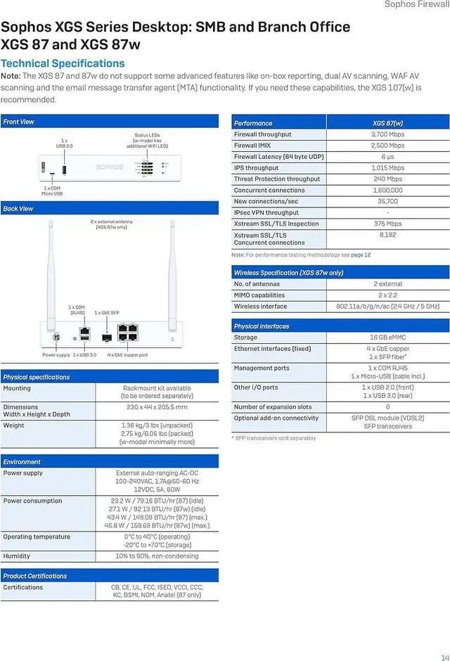 Sophos XGS 87w Next-Gen Firewall - US Power Cord (XY8BTCHUS)