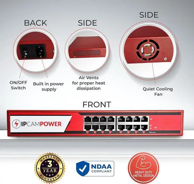 VERSATILE COMPATIBILITY: Designed for a wide range of POE devices such as IP Cameras, POE Lighting, and IP Phones, this injector doesnt just power them; it provides ample bandwidth, robust construction, and backward compatibility, enhancing your network's overall efficiency. 12.625"W x 8.25"D 1.75"H 3 Year Warranty. NDAA & TAA Compliant