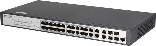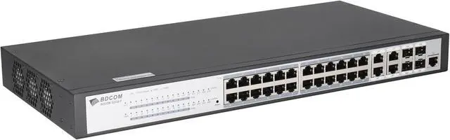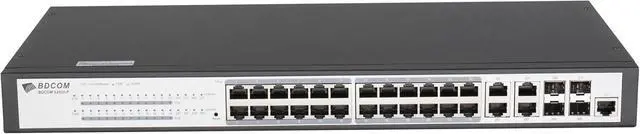 BDCOM Ethernet PoE switch with 28 GE ports (1 console port, 24 GE PoE ports, 4 GE TX/SFP combo ports, 1 standard AC220V power supply, 400W, the cooling fan, 1U, standard 19-inch rack-mounted installation)