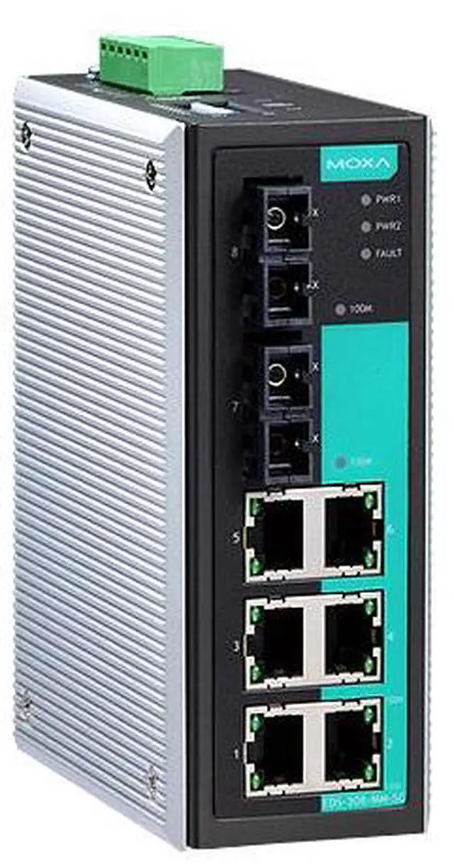 Moxa EDS-308-MM-SC - Industrial Unmanaged Ethernet Switch with 6 10/100BaseT(X) ports, 2 multi mode 100BaseFX ports, SC connecto