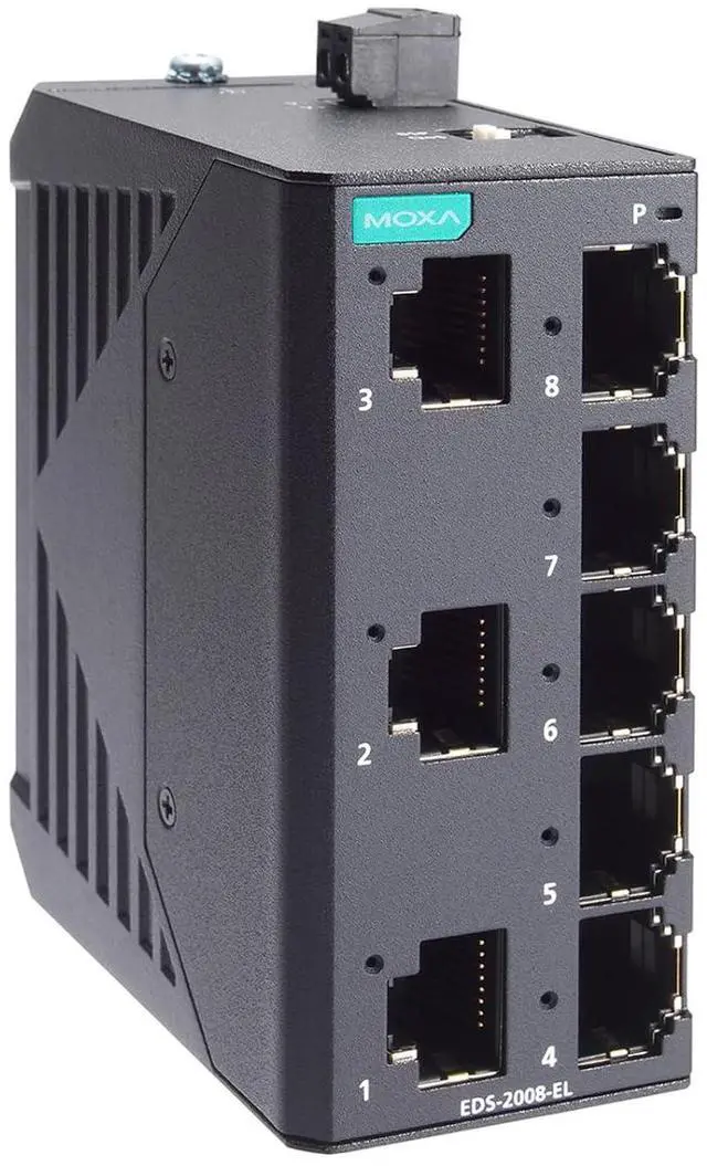 8x 10/100Base-T(X) Ports: Provides eight Ethernet ports for connecting various industrial devices.