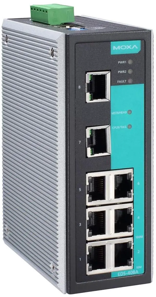 Turbo Ring and Turbo Chain (recovery time < 20 ms @ 250 switches), and RSTP/STP for network redundancy