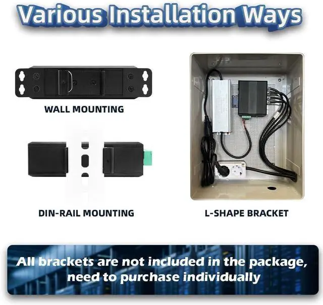 4. 3 LEVELS CASCADE: It supports 3 levels cascade, therefore, it can reach 1312ft PoE transmission with 3 PoE extender cascaded. This 5-port industrial PoE extender supports a DIN-rail and wall wall-mounted ( DON'T INCLUDE BRACKETS).
