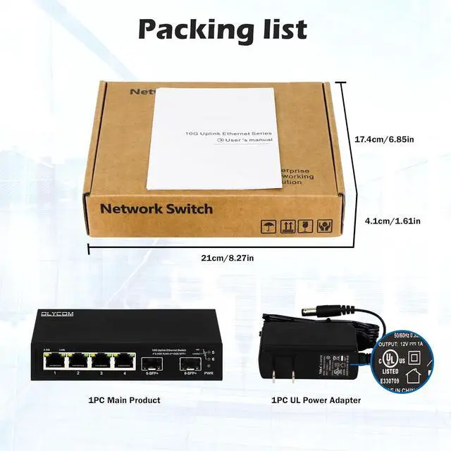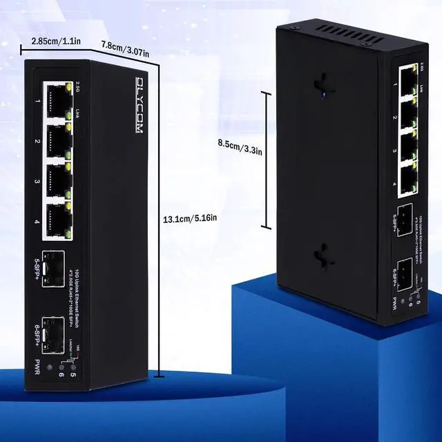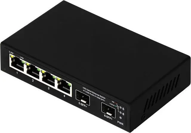 Product Name6port 2.5G Fiber Network SwitchPort4* 2.5G RJ45 Ports + 2* 10G SFP+ SlotsSwitching Capacity60GbpsBuffer8.1MbitJumbo Frame12KMAC Address4KMounted TypeDesktop or Wall MountInput Voltage12VDCProduct Size5.16"L x 2.76"W x 1.1"HProduct Weight1.1 Pounds 2.5G Network Switch Wall Mounted Quiet Fanless Design Compact Network Switch 2.5G Network Switch Specifications