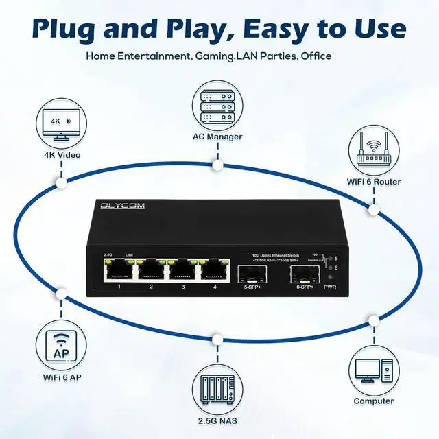 The 2.5G network switch is easy to set up without software installation or configuration. Plug and play.