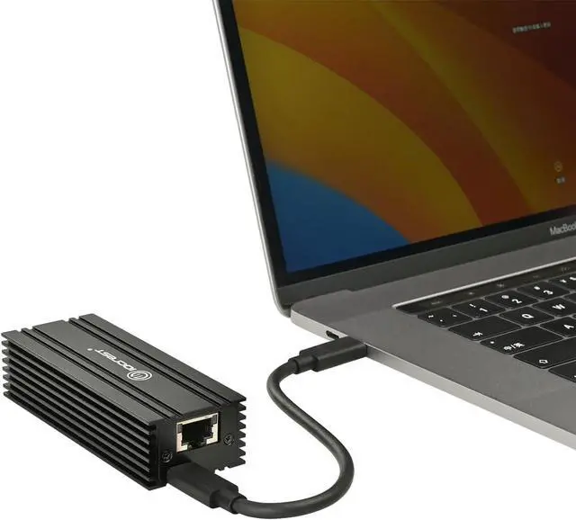 Adds an RJ45 10 Gigabit Ethernet port to your computer with Thunderbolt 3 ports. Connects to any Thunderbolt 3 computer port, or at the end of a Thunderbolt 3 device daisy chain.