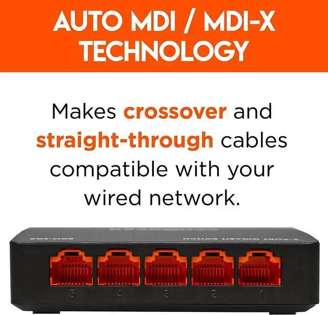 No matter what type of Ethernet cable you've got, it'll work with an Echogear switch. Auto MDI/MDI-X technology enables crossover and straight-through cables to work in any orientation.