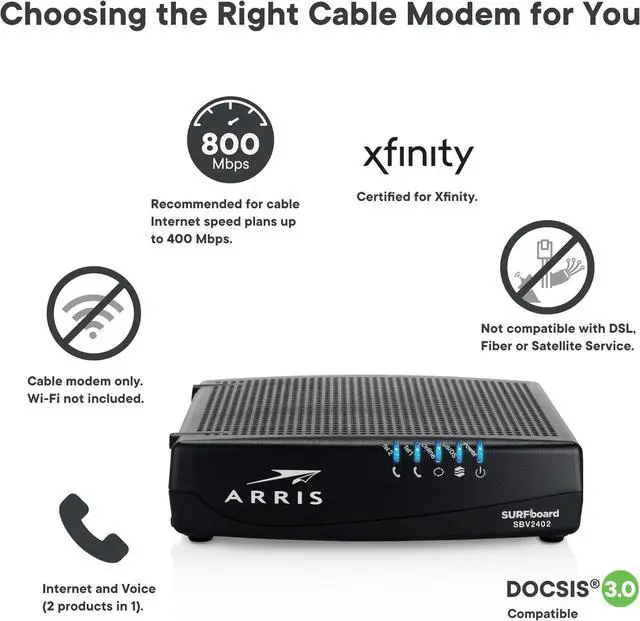 Compatibility: The SURFboard SBV3202 is compatible with Xfinity Internet and Voice service and is approved for cable internet speed plans up to 800 Mbps.