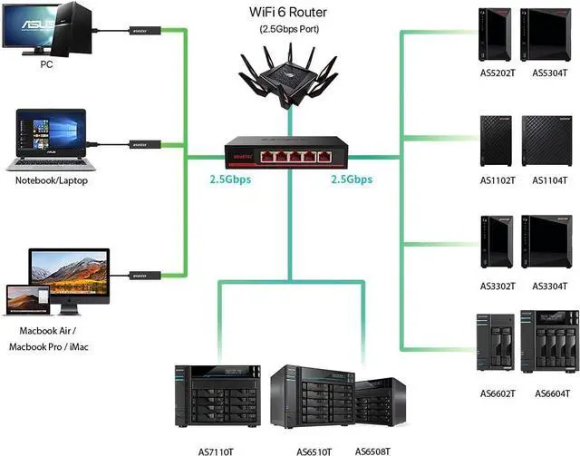 This ItemAsustor ASW205T 5 Port 2.5G Unmanaged Ethernet Network Switch, Plug and Play, Wall-MountRecommendationsTP-Link TL-SG105S-M2 | 5-Port Multi-Gigabit 2.5G Ethernet Switch | Unmanaged Network Switch | Ethernet Splitter | Plug & Play | Desktop/Wall Mount | Silent Operation Zyxel 5-Port 2.5Gb MultiGig Ethernet Unmanaged Switch | 5 x 100/1G/2.5G Ports | Plug & Play | Metal Housing | Desktop or Wall-Mount | Ethernet Splitter MG-105 D-Link 5-Port 2.5GB Unmanaged Gaming Switch with 5 x 2.5G - Multi-Gig, Network, Fanless, Plug & Play (DMS-105),Black 5 Port 2.5GB Ethernet Switch Unmanaged Network Switch | 5 x 2.5 Gigabit | 1 x 10G SFP+ | Multigig Switch 10-100-1000Mbps | 45G Bandwidth | Plug & Play | Fanless Metal Internet Switch 10 Port 2.5Gb Unmanaged Ethernet Switch with 8* 2.5G Base-T Ports, 2* 10G SFP+ Ports. GiGaPlus 2.5Gbps Network Switch for 2.5Gbps NAS/PC, WiFi6 Router, Wireless AP. Fanless Design, Plug and Play