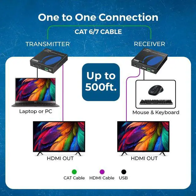 1 to Many Transmission with Low Latency Performance This extender kit can send one-to-one signals through a single transmitter and receiver, or send one-to-many signals through an Ethernet Network switch. Control 1 PC remotely through more than one location. HDMI Loop Out Additional HDMI Output on the Transmitter end allows you to add a local display for monitoring. Supports HDMI 4K @ 60Hz 4:4:4, 480i 60Hz, 480p 60Hz, 576i 60Hz, 576 50Hz, 720p 50/60Hz, 1080i 50/60Hz, 1080p 50/60Hz; No driver installation required.