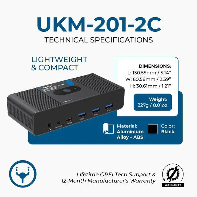 Two Switching Methods for Convenience Switch between devices via a single-button on the unit or the included desktop controller. Helps declutter your desk and boost productivity. Note: This unit does not support hotkey or auto-switching functions. Includes - HDMI & USB-C 4K KVM Switcher, USB-C Cable, Wired Remote Control, Operation Manual, 1 Year Warranty.