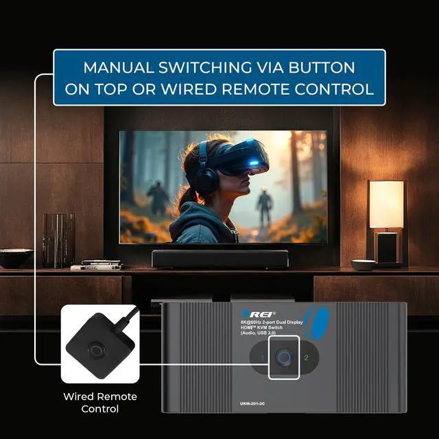 Perfect for Multi-Tasking on a Dual Monitor Display Control two devicessuch as a PC, laptop, Android smartphone, streaming box, PS4/PS5, or 4K Blu-ray playeron a Dual monitor Extended Display with this versatile HDMI switcher + USB hub. Use one set of USB keyboard and mouse to control both sources seamlessly. Supports high-resolution 8K video and USB peripheral sharing for efficient multitasking at home or in the office.
