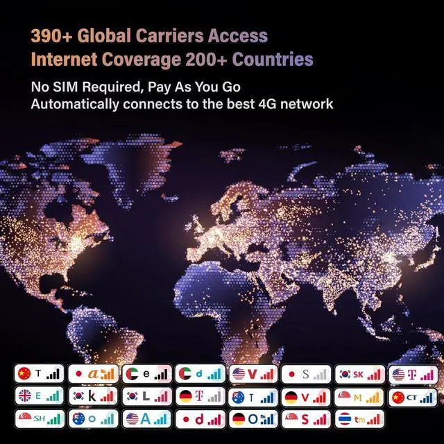 Portable WiFi for Global TravelKeep seamless connectivity with GlocalMe, your pocket-friendly companion that offers secure and reliable mobile WiFi hotspot coverage in over 200 countries. Our patented CloudSIM technology porvides smart local network auto-selection for optimal internet signal, which makes it ideal as a hotspot device for your global travels or business trips. For example, there are AT&T, T-Mobile and Verizon coverage at the same area, AT&T has poor network condition while Verizon has the best, G4 Pro will select Verizon for you to use. Say goodbye to interruptions and lags so your life stays seamlessly integrated whether online or off.