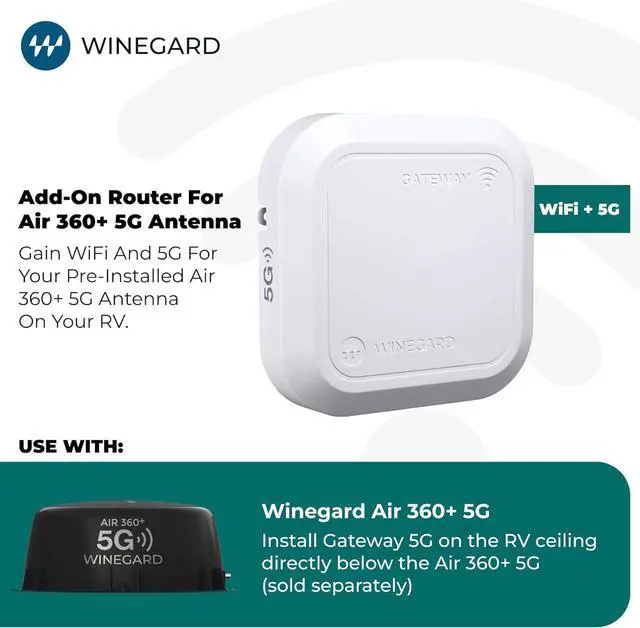 Built for RVs - ceiling mount hub (Air 360+ 5G required): pairs with Winegard Air 360+ 5G for a clean, integrated install on your RV ceiling.