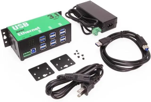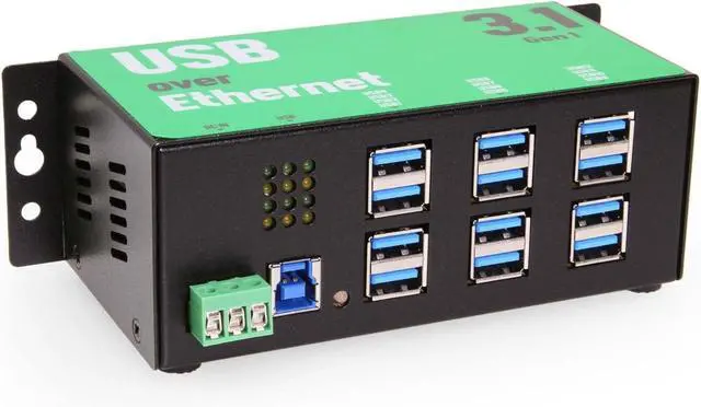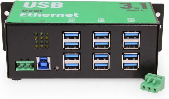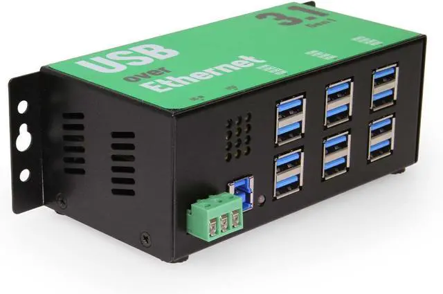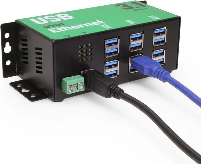 Industrial-grade hub with SECC metal case with two mounting holes on bottom of case