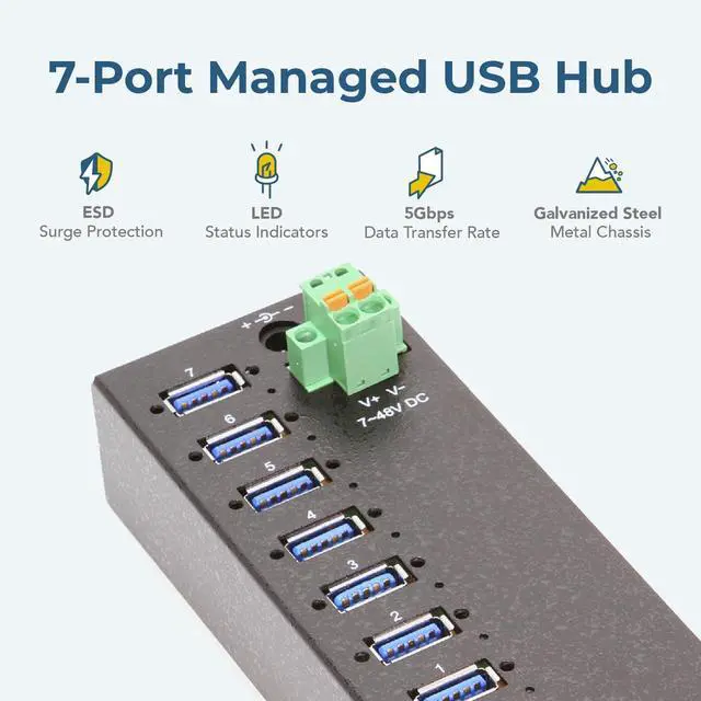 Advanced Protection: The 7-port USB 3.2 Gen 1 hub protects your device with advanced ESD protection. Built-in 15kV ESD surge protection offers you security and assurance that your connected devices will be protected.