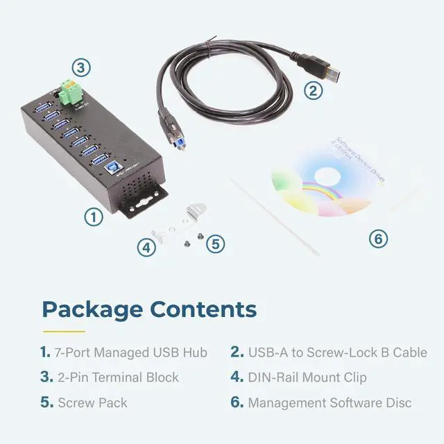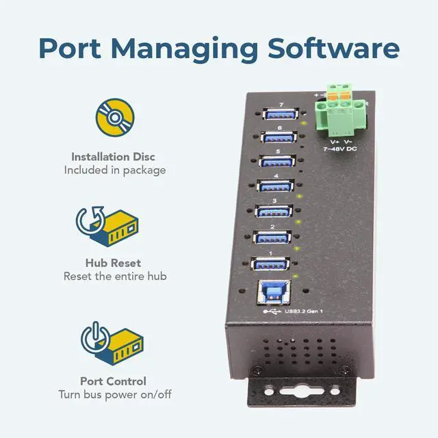 Port Management Software: Control each individual ports' status, turn bus power on/off, and even reset the entire hub through the hub's management software which supports Windows, Mac, and Linux operating systems.