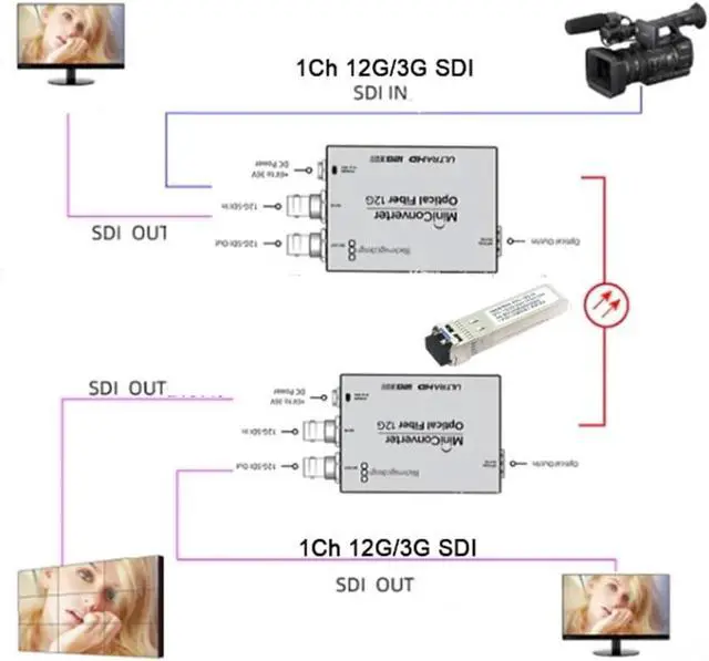 4K Video SFP SD-SDI HD-SDI 12G Suitable for BMD Yellobrik High quality Singlemode Dual Fiber 20km 12G Video SFP+ Optical Transceiver support 4K 60HZ Video This 12G SDI SFP can't use for pathological signal ,It is not an error handling optical module