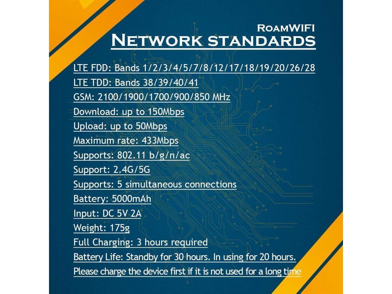 - Share the network – You can connect to RoamWiFi R10 and share the network with up to 5 smart devices at the same time, including laptops, tablets, and etc. The R10 router has a built-in 5000mAh battery, which can be used over 18 hours, your internet surfi experience will be easy and enjoyable!