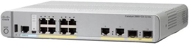 Catalyst 2960-CX 8 - port compact Switch Layer 2, POE+, 124W - 8 x 10/100/1000 Ethernet Ports, 2 SFP&2GE uplinks- LAN Base - Managed WS-C2960CX-8PC-L equips 8 Gigabit Ethernet POE+ ports with 2 x 1 Gigabit copper and 2 x 1 Gigabit SFP uplinks. The POE powers up to 30W/port and supplies total 124W POE budget which can power IP phones, IP Cam or other POE devices.