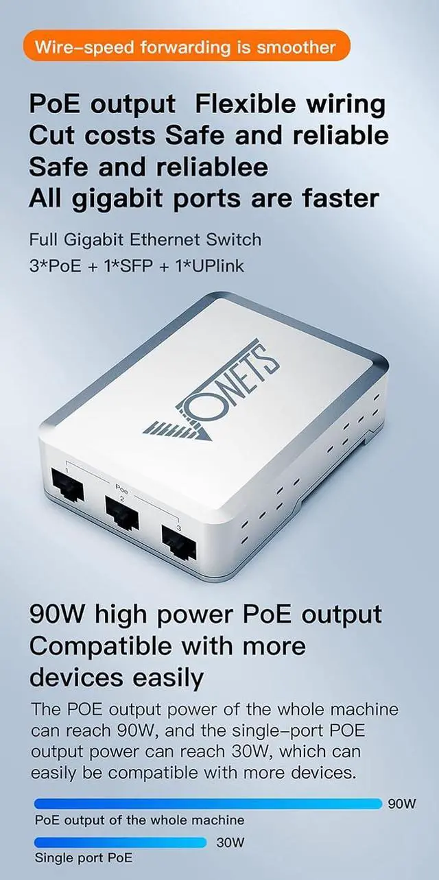 PoE Gigabit Network Switch 5 Ports : 3 PoE (10/100/1000Mbps RJ45 Ports) +1 SFP (1000Mbps SFP Port)+1 Uplink