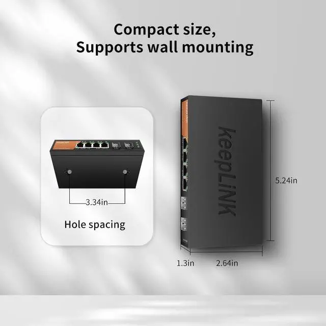 6KV lightning protection: Durable metal case with fanless silent design for more power saving, double side cooling holes, wide temperature range -10~50°C, LED indicator lights, stable operation, easy to maintain network status.