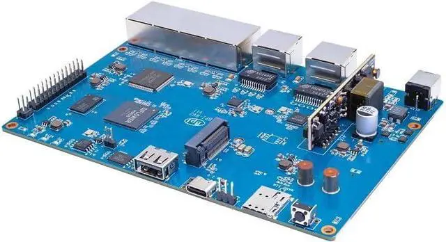 [Enterprise Gateway] BPI-RV2 RSIC-V is an open source office home gateway router board supporting external DDR3/DDR3L/DDR4 SDRAM and NAND/NOR SPI Flash. High-speed ports include USB2.0, PCIE2.0, and low-speed ports include SPI, UART, I2C, and PWM. It can be used as an enterprise gateway or a workstation.
