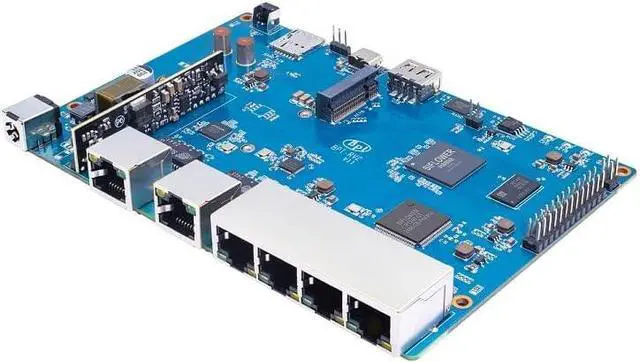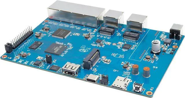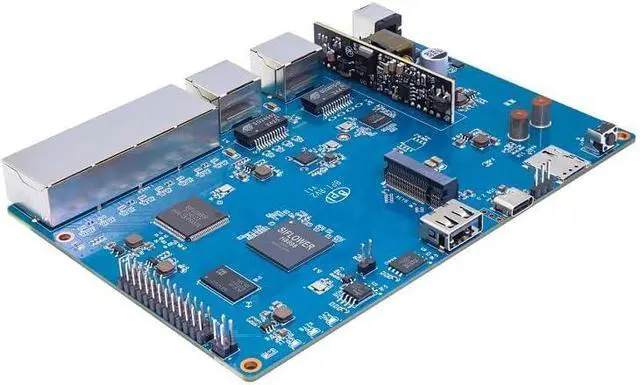 [Industrial SoC Gateway] The Banana Pi BPI-RV2 Gateway Router Board is a high-performance industrial SOC gateway device that utilizes the advanced TSMC 12nm FFC process and integrates a quad-core 64-bit RSIC-V processor and a dedicated NPU network processing gas pedal (supporting L2/L3 hardware processing, IPv4/IPv6 dual stack, and 20Gbps switching capacity).