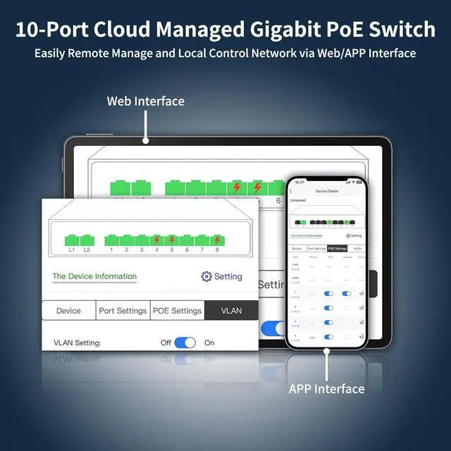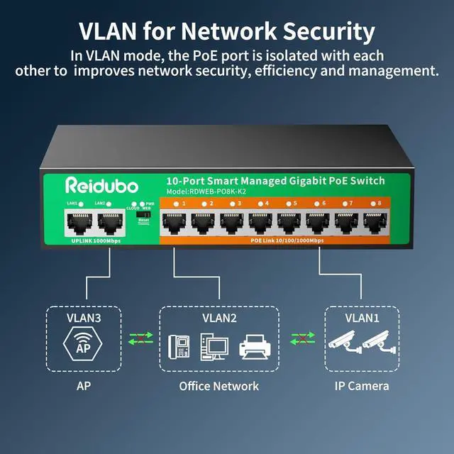 VLAN Security Our cloud-managed PoE switch packs powerful VLAN tools to lock down your networksegmenting traffic to block security gaps and keep data flowing safely.Prevent broadcast storms, Prevent data confusion, improve Lan security and data transmission.