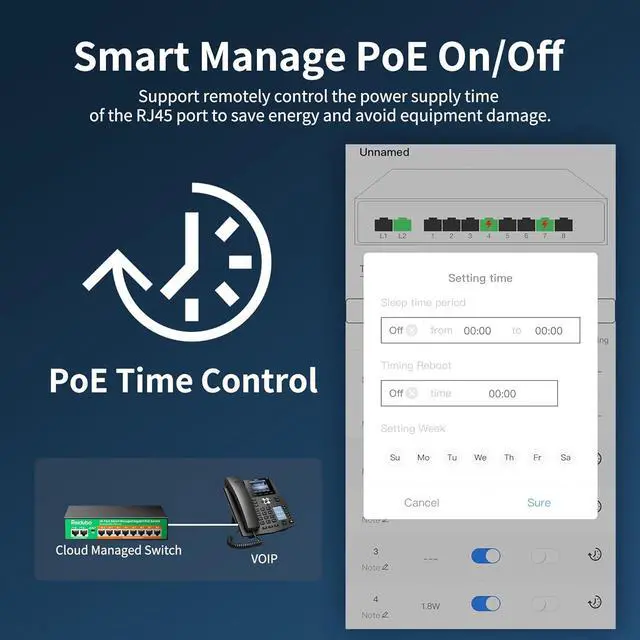 PoE Scheduler FeatureUse the PoE scheduler to set up exact days and time slots when your switch will power up Ethernet devices. This is super handy if your gadgets only need to run during certain parts of the daylike office hours or production shifts. By scheduling power delivery, you can cut down on electricity use and lighten the data load on your network when devices arent in use. That means lower energy bills and a smoother-running network overall.