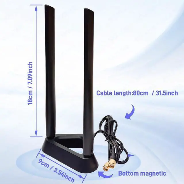 Double RP-SMA Connector Suitable modelWiFi 6 Antenna For GIGABYTE ,For MSI ,For ASUS Motherboard , and most routersPCIe cardswireless network cards,as long as they have 2 SMA inner pin ports, they can be adapted to use.