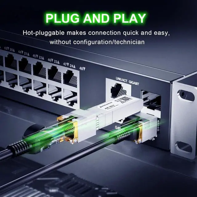 This hot-pluggable SFP+ transceiver delivers full 10 Gigabit Ethernet over standard Cat6a or Cat7 cablesup to 30 meters.