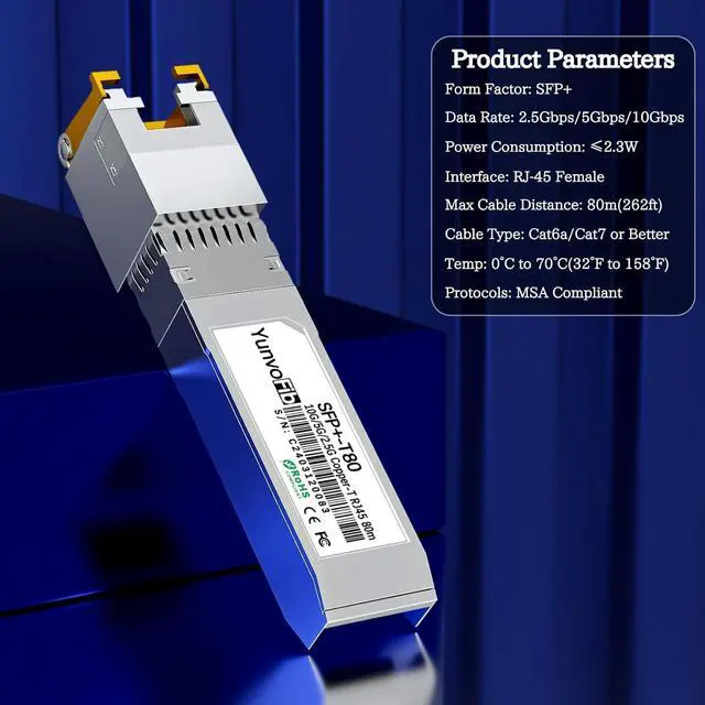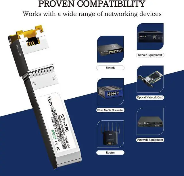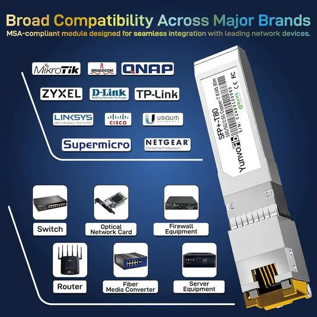 Wide Compatibility & Tested Quality YunvoFib 10GBase-T copper sfp+ module compliant with IEEE 802.3 and IEEE 802.3ab standards and has been rigorously tested for compatibility with leading brands such as Cisco, Mikrotik, D-Link, Netgear, Meraki and Ubiquiti ect, as well as other open switches
