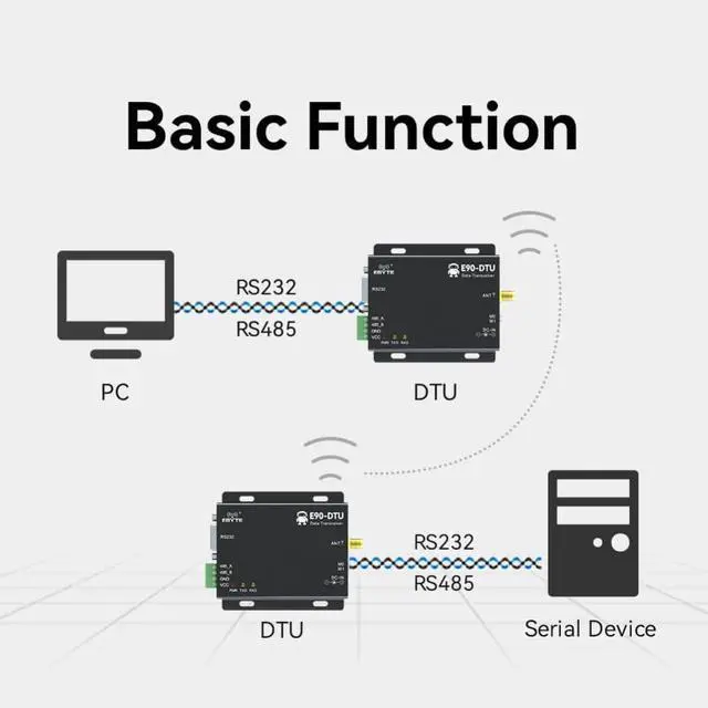 E90-DTU(433L30)-V8 is a wireless data transceiver of 433M with standard RS232/RS485 connectors. They are half-duplex. TX & RX modems with LoRa technology and transparent transmission mode. Voltage supply ranges from 8V to 28V, Working frequency: 410~441MHz (Default:433MHz).