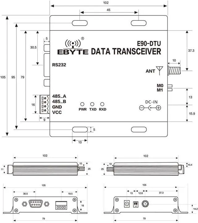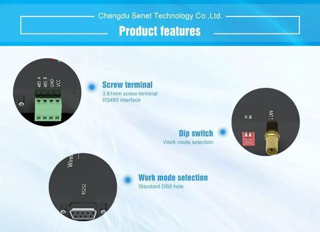 Simple and efficient power supply design, support power supply device or line pressure mode, support 10~28V power supply. Built-in watchdog, and accurate time layout, once an exception, the module will automatically restart, and can continue to work in accordance with the previous parameter Settings.