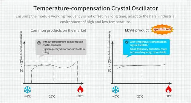 Temperature compensators are adopted to make the frequency stability better than +1.5PPM. Operation temperature range: -40°C ~ +85°C, applicable for various harsh environment, it is industrial grade.