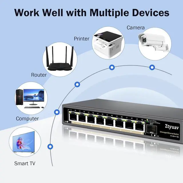 Unmanaged 2.5G network switches, easy to install and use, just connecting power and devices.