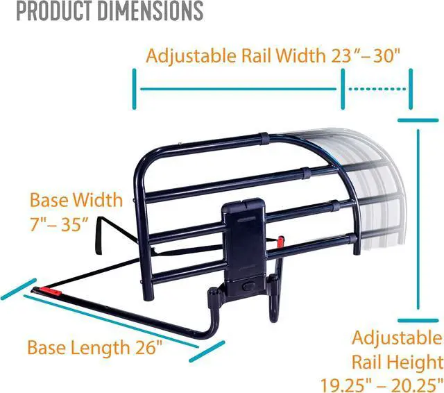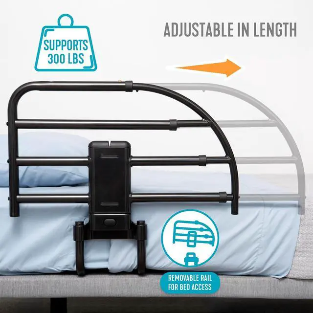 Prevent Falls: The guard rail adjusts in length from 23 to 30 inches to protect against falls out of bed; it doubles as a sturdy support handle for safe bed entry, exit, or repositioning, providing stability and peace of mind; supports 300 lbs