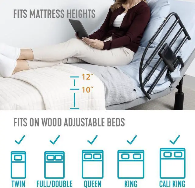 Compatible with Most Adjustable Wood Beds: Easily assemble and install in minutes; the bedrail can be used on both traditional and adjustable beds with mattresses 10-12 inches thick, providing an adaptive home care solution as mobility needs change