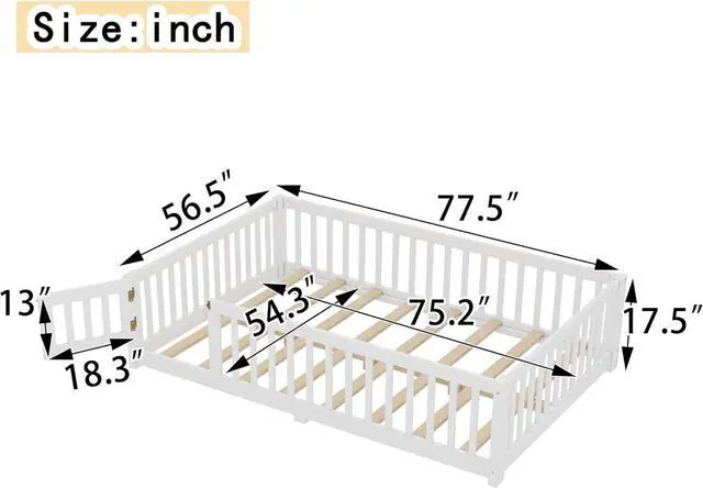 Easy Assembly & Hassle-Free SetupShipped in one compact box with clear instructions and tools included, this full montessori floor bed is simple to assemble. Create a secure and space-saving montessori full size floor bed solution without stress mattresses not included