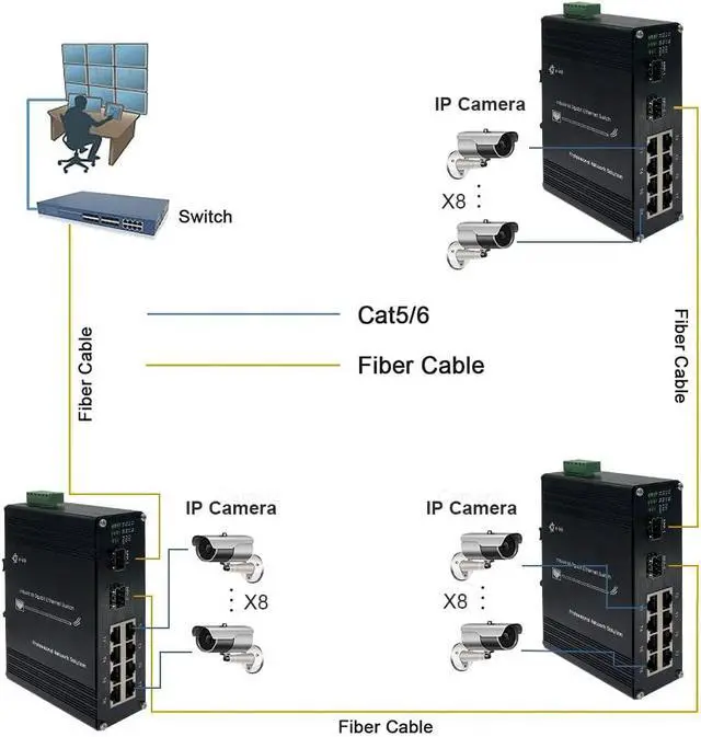 10/100/1000Mbps Ethernet The Industrial 10 ports Ethernet Switch have 10 RJ45 ports 10/100/1000Mbps half/full duplex.