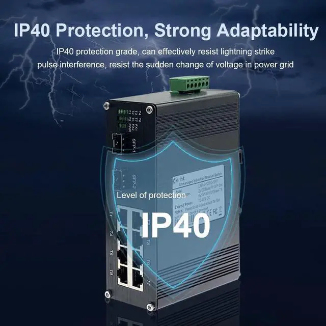 Industrial Grade Quality The Hardened Mini Gigabit Switch use industrial grade components and aluminum housing, it can work at wide range temperature -40°C to 75°C (-40°F to 167°F). You can use it in outdoor harsh environment.