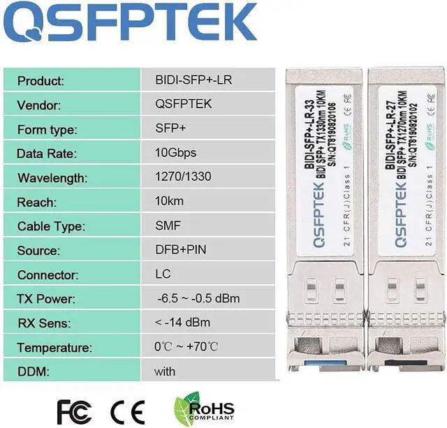 • After-sales Service: We offer many compatible options, If you are not sure about the compatibility of your device, please feel free to email us. QSFPTEK is a manufacturer of SFP module, customized service is available.